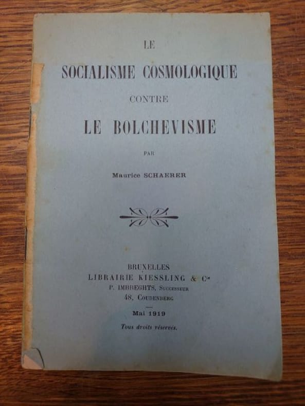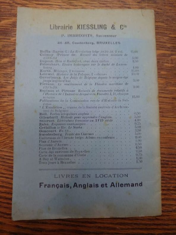 Bruxelles, librairie Kiessling & Cie, mai 1919. 17,5 x 12 cm, 30 pp. Plaquette agrafée, couverture légèrement usée sinon bon exemplaire. Rare.