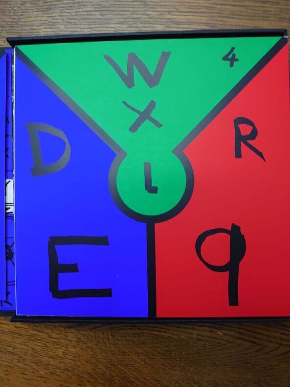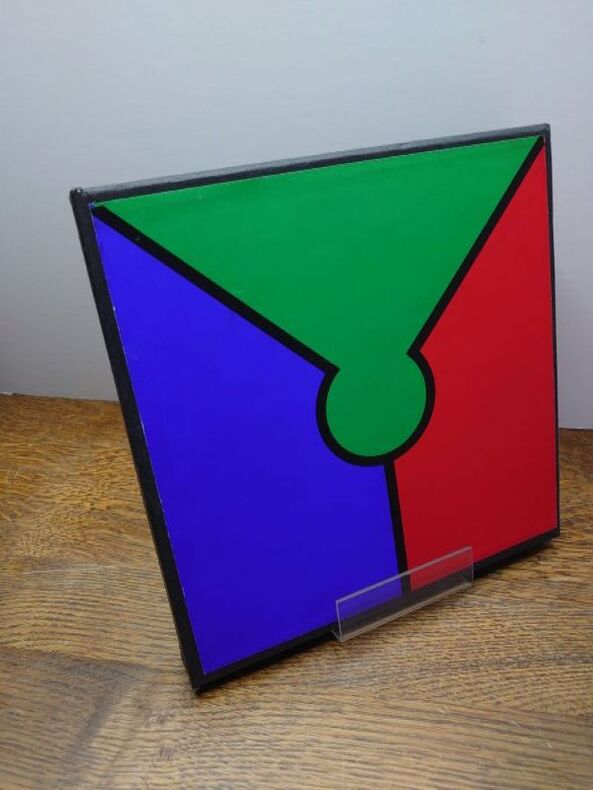 Genève, Editions Claude Givaudan, 1967. Livre-objet présenté sous une boîte carrée en carton, sérigraphiée sur toutes ses faces (intérieures et extérieures), contenant 62 feuillets carrés (21 x 21 cm).
