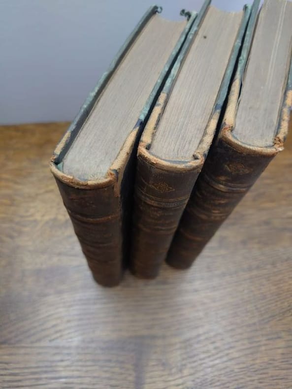 Librairie Nouvelle. 1854. 3 tomes en 3 volumes in-8°, reliure demi-basane noire, dos à nerfs, pièce de titre rouge. 350 & 322 & 312 pages. E.O. parue anonymement.