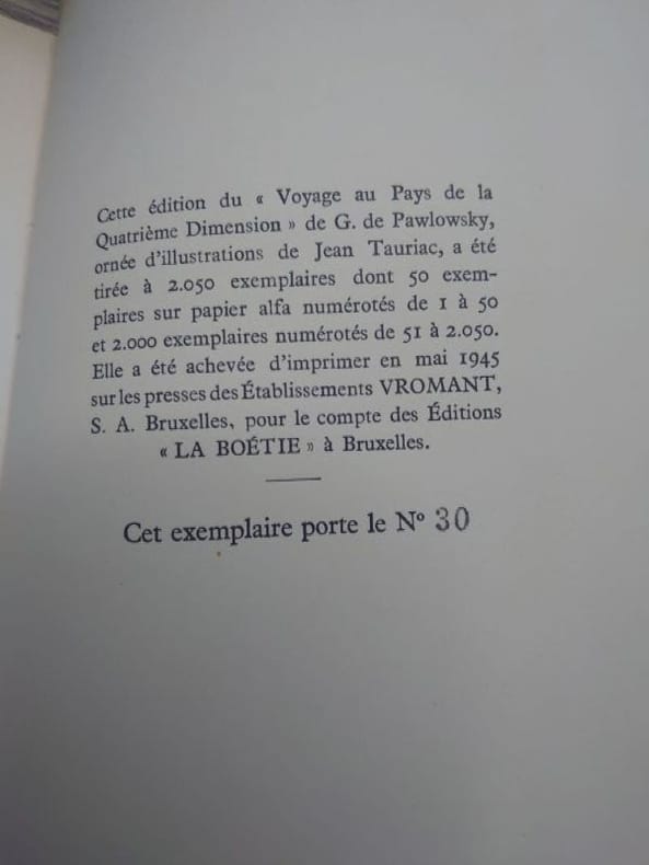 1945 Editions "La Boétie", 1945. 22,2 x 14,2 cm, 206 pp. Broché en bel état. Édition originale, un des 50 exemplaires numérotés sur papier Alfa.