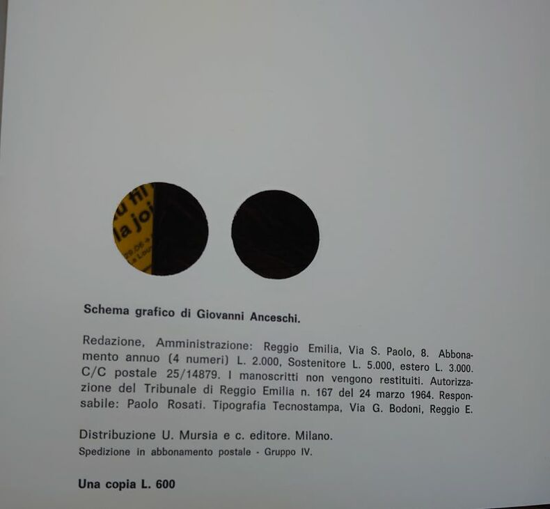 Reggio Emilia, Tipografia Tecnostampa, 1964. 21,5 x 21,5 cm, 88 pp. Broché, couverture légèrement salie sinon bon exemplaire.