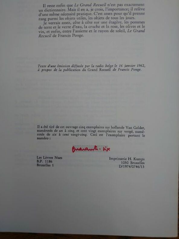 Le fait accompli 121 août 1974. Les lèvres nues. 29,5 x 22,5 cm, 4 feuillets non coupés en très bel état. Édition originale, un des 120 ex. num. sur vergé (après 5 ex. sur Hollande).
