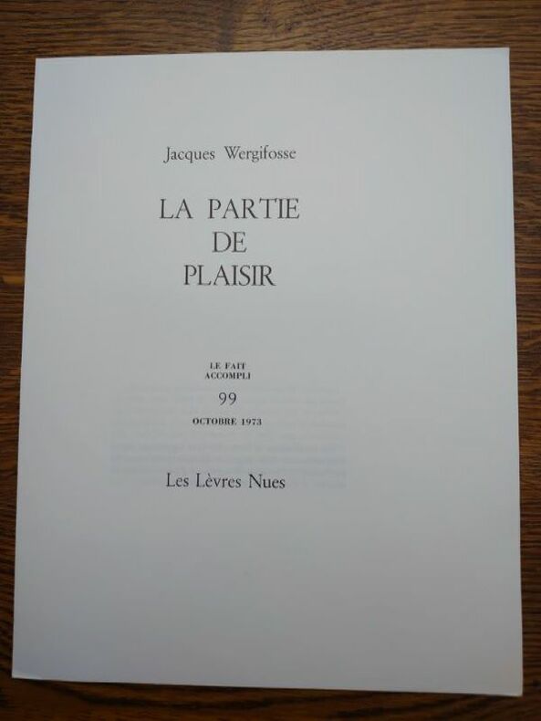 Le fait accompli, octobre 1973. Les lèvres nues. 29,5 x 22,5 cm, 4 feuillets non coupés en très bel état. Édition originale, un des 75 ex. num. sur vergé (après 5 ex. sur Hollande).