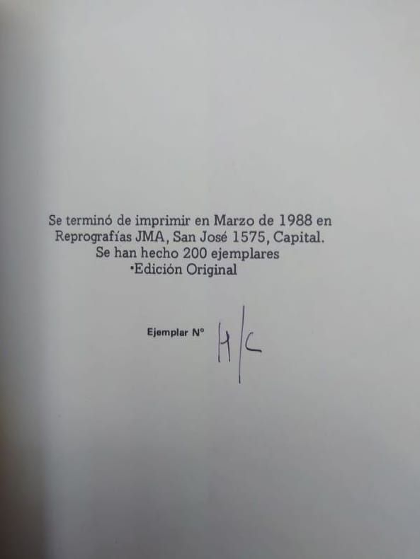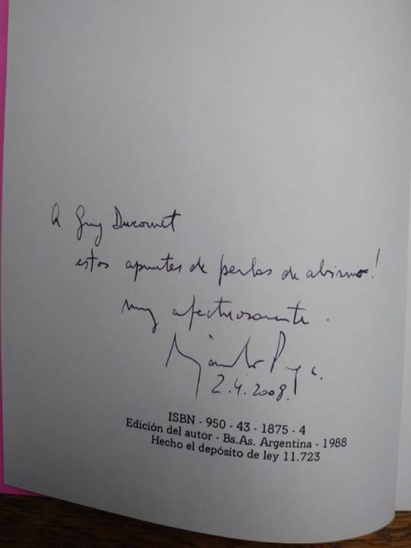 1988 Buenos Aires, Edition del autor, 1988. 18 x 15 cm, 30 pp. Broché, bel exemplaire. Édition originale, exemplaire hors commerce. Envoi autographe signé de l'auteur.