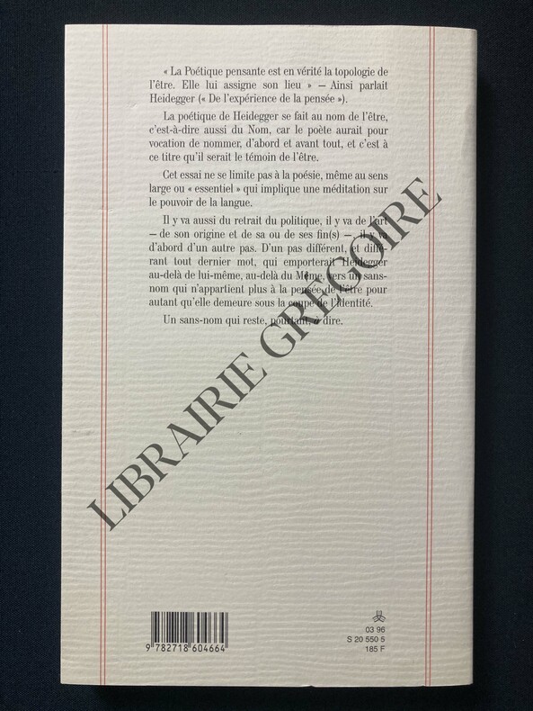Galilée. 1996. In-8. Broché. Etat d'usage, Tâchée, Dos satisfaisant, Intérieur acceptable. 217 pages - couverture contrepliée - nombreuses annotations, phrases soulignées au crayon à papier à l'intérieur du livre sans réelle conséquence sur la lecture.. . . . Classification Dewey : 100-PHILOSOPHIE ET DISCIPLINES CONNEXES
