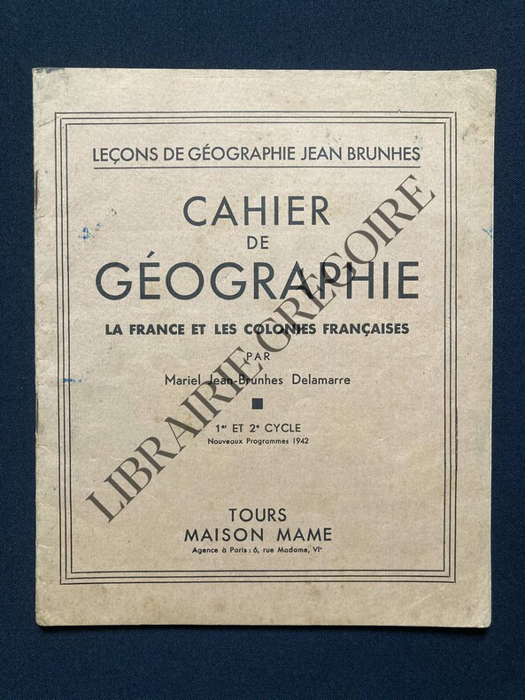 Librairie Soustelle. Non daté. In-8. Broché. Etat d'usage, Tâchée, Dos fané, Intérieur bon état. 80 pages. Pages de texte en vis-à-vis avec pages vierges.. . . . Classification Dewey : 372.89-Livre scolaire : histoire / géographie