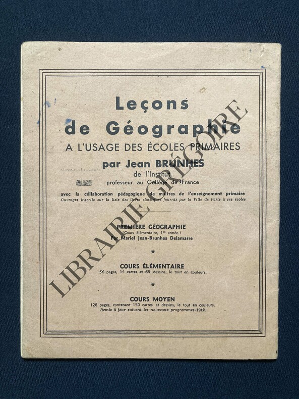 LECONS DE GEOGRAPHIE JEAN BRUNHES-1er ET 2e CYCLE-NOUVEAUX PROGRAMMES 1942-42 PAGES FORMAT 23 CM X 19 CM-LES MONTAGNES ET LES FLEUVES-MASSIF CENTRAL-COTES DE LA MER DU NORD DE LA MANCHE DE L'OCEAN ATLANTIQUE-LA SEINE-LA LOIRE-LA GARONNE-LE RHIN,LA MEUSE-REGION DU BASSIN PARISIEN-EXECUTION DES CARTES-PRINCIPALES LIGNES DE CHEMINS DE FER-AFRIQUE DU NORD TUNISIE, ALGERIE, MAROC, TERRITOIRES DU SUD-AFRIQUE OCCIDENTALE ET EQUATORIALE FRANCAISE-LIBAN SYRIE-DJIBOUTI-LA REUNION-MADAGASCAR-INDOCHINE-COLONIES FRANCAISES D'AMERIQUE ET D'OCEANIE-1 CARTE REALISEE ("LES MONTAGNES ET LES FLEUVES" PAGE 3)-(100GH)