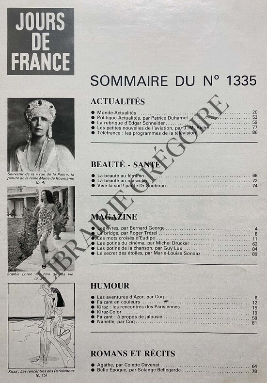 92 PAGES FORMAT 24 CM X 33 CM-LE CHAH D'IRAN EN COUVERTURE-THIERRY ASSIEGE,2P,LE LURON-SOPHIA LOREN:LE FILM DE MA VIE,4P-LE DESTIN CRUEL ET FABULEUX DE REZA CHAH PAHLAVI,14P-VIVE LA MARIEE!,BORG,4P-LE "TITANIC" SAUVE DES EAUX,2P,2 PHOTOS,ALEC GUINESS-LA REINE ETAIT SEULE,BELGIQUE,2P-LA RUBRIQUE D'EDGAR SCHNEIDER,LE BONHEUR DE VIVRE A MOUGINS,3P-A LA POURSUITE DES ROLLING STONES,PHOTO-FRANCIS CABREL: 33 TOURS ET TOUR DU MONDE,PHOTO-COUVERTURE UN PEU FROTTEE-(VARIA0913)