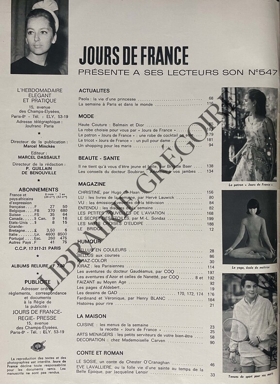 200 PAGES FORMAT 34 CM X 26,5 CM-EN COUVERTURE "LA PRINCESSE PAOLA",GROS PLAN-EVE LAVALLIERE OU LA FOLLE VIE D'UNE SAINTE AU TEMPS DE LA BELLE EPOQUE,PAR JACQUELINE LENOIR,5P,PHOTOS-"PRINCESSE SOLEIL",PAOLA DE BELGIQUE,7P PAR YVES SALGUES-BOB DYLAN,PHOTOS MARIE LAFORET ET HUGUES AUFRAY-HAUTE COUTURE: BALMAIN ET DIOR,9P-VIRNA LISI: UNE MERE DE FAMILLE SUR LES TRACES DE MARILYN,2P,4 PHOTOS-CHARLES SUR LES TRACES DE SON PERE,2P,5 PHOTOS-MARGARET:"J'ADORE LE TOBOGGAN",2P,2 PHOTOS-PARIS MOSCOU DEVANT BECAUD VALENTINA A GAGNE LA COURSE AUX AUTOGRAPHES,2P,5 PHOTOS,TERECKOVA