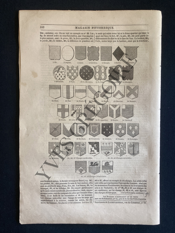 Aux bureaux d'abonnement et vente - Paris quais des Grands Augustins.. avril 1872. In-12. Broché. Bon état, Livré sans Couverture, Dos satisfaisant, Intérieur frais. 8 pages environ illustrées de gravures en noir et blanc dans le texte. Paginées de 105 à 112. Manque sur une page altérant la lecture de 6 mots (article de Jean Baptiste Papillon).. . . . Classification Dewey : 70.4413-Magasin pittoresque, universel et mosaïque