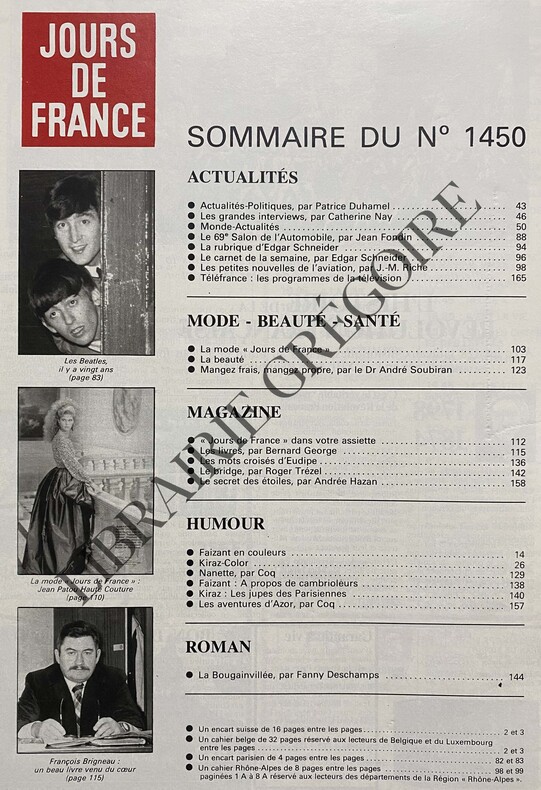 172P-EN COUVERTURE BELMONDO:25 ANS DE CINÉMA "L'AS DES AS" ET SON FILS-BÉBEL:"L'AS DES AS" FÊTE SES 25 ANS DE CINÉMA(6P)-QUI EST LE GÉNÉRAL SHARON?(4P)-LE COURAGE DE STÉPHANIE-PAPA MACIAS:"JE VAIS BIEN MERCI"-IL Y A 20 ANS LE PHÉNOMÈNE BEATLES(3P)-LE "MEURICE":LES CLÉS DU PARADIS-