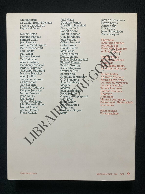 Editions de l'Herne, Paris, 1966, 460 pages, Cahiers n°8. Couverture illustrée de l'éditeur. Broché. Bel exemplaire. Papier jauni. Textes de Henri Michaux dont plusieurs inédits. Publiés par Dominique de Roux, direction Raymond Bellour. Textes et études de nombreux auteurs.