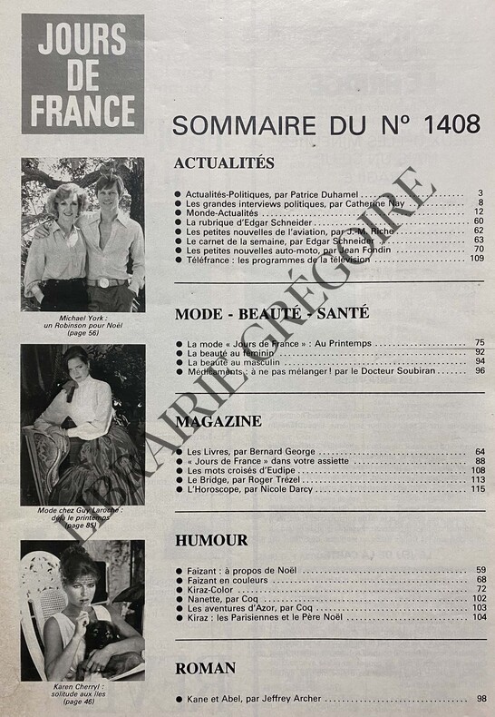 116 PAGES-YVES MONTAND ET ISABELLE ADJANI EN COUVERTURE POUR TOUT FEU TOUT FLAMME-CATHERINE NAY/PHILIPPE MESTRE-QUAND YVES MONTAND NE JOUE PAS.-POLOGNE: LE DESESPOIR-AU RAYON DES JOUETS LES POUPEES DE DENISE (FABRE)-LE PATRONAT CHANGE DE TETE-CHARLES VANEL: 70 ANS DE CARRIERE-UNE PLUIE D'ETOILES POUR GUY LUX-LE MANCHON DE DIANA-ROBERT HOSSEIN: MON AMI JEAN VALJEAN/L.VENTURA-KAREN CHERRYL: LE RENDEZ VOUS MANQUE-JEANE MANSON CHEZ CHRISTIAN DIOR-