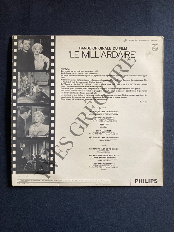 33 TOURS-MARILYN MONROE ET YVES MONTAND EN COUVERTURE-DISQUE PHILIPS (CHLUC)