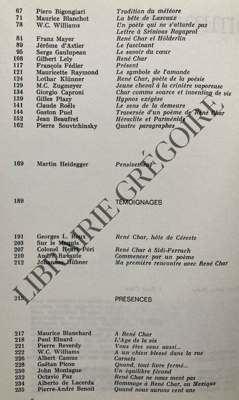 330 PAGES-FORMAT 21 CM X 27 CM-PHOTOGRAPHIE DE RENE CHAR EN COUVERTURE-JOINT ARTICLE DE CLAUDE ROELS "SANS CONTENTEMENT NI DESESPOIR" RENE CHAR-(100M)