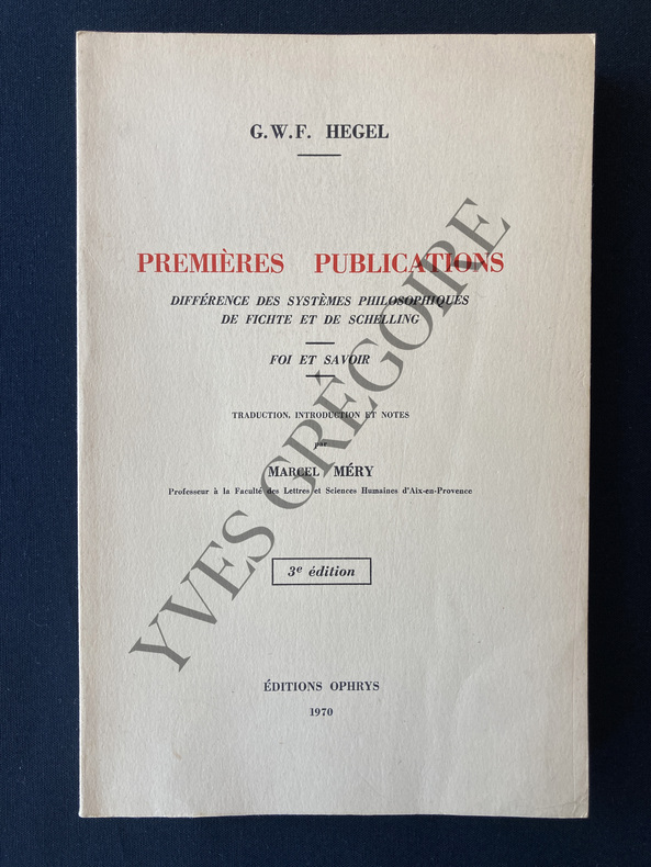 HEGEL G.W.F. ( Traduction, Introduction et notes par Marcel Méry )