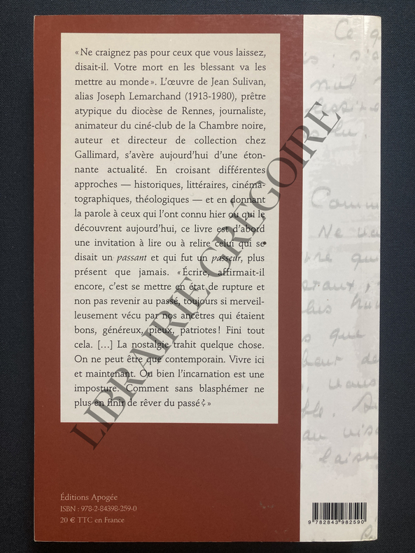 272 PAGES-15,2 CM X 23,2 CM-PHOTOGRAPHIE DE JEAN SULIVAN EN COUVERTURE-(11E)