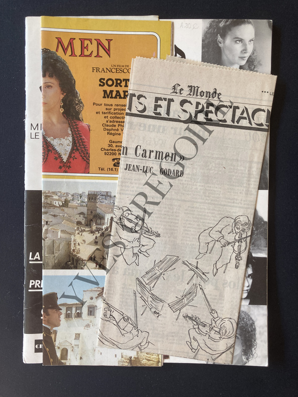 50 PAGES-21 CM X 29,7 CM-SEVILLE, PAR MONIQUE ETIENNE-CARLOS SAURA: CARMEN, C'EST SIMPLEMENT UN PERSONNAGE QUI VIT, PAR MARIE-JOSEE DEVILLARD-CHANTE ET DANSE LA BOHEME, PAR ANNE-MONIQUE EPSTEIN-D'UN CARMEN A L'AUTRE, PAR NADIA PIZZUTI-PETER BROOK: PETER BROOK OU L'HOMME A FACETTES, PAR DANIEL CHOCRON-LE THEATRE DES BOUFFES DU NORD-DU THEATRE AU CINEMA, EN PASSANT PAR LA TELEVISION, PAR DANIEL CHOCRON-ENTRETIEN AVEC JEAN-CLAUDE CARRIERE, PAR DANIEL CHOCRON-DES CONTRAINTES ENRICHISSANTES-MERIMEE, UNE VIE PROSPERE, PAR ANNE MURATET-FICHE ARTISTIQUE-SIX VISAGES POUR CARMEN-FICHE TECHNIQUE-CARMEN ET DON JOSE DANS LA NOUVELLE DE MERIMEE, PAR ROSE-MARIE BOGNAR-CARMEN, UNE AUBERGE ESPAGNOLE, PAR DOMINIQUE BRISSON-JEAN-LUC GODARD: DEUX OU TROIS CHOSES QUE JE SAIS DE LUI, PAR JEAN-MICHEL MORAND-QUATUOR OPUS GODARD, PAR DAVID TRAN ET CLAIRE VILLEY-COUTARD, LE CARABINIER, PAR DANIEL CHOCRON ET JEAN-MICHEL MORAND-FRANCESCO ROSI: EXTRAITS DE LA CONFERENCE DE PRESSE DE CARMONA, PAR NADIA PIZZUTI-POUR UNE INTERPRETATION VISUELLE DE LA MUSIQUE, PAR NADIA PIZZUTI-PLACIDO DOMINGO, RUGGERO RAIMONDI-COMME DES PETITS SOLDATS, PAR ANNE-MONIQUE EPSTEIN-OPERA ET CINEMA: DES FRERES ENNEMIS, PAR DOMINIQUE BRISSON-ECHEC ET GLOIRE POSTHUME D'UN OPERA, PAR JEAN-LUC BARBERI-LA CORRIDA, PAR NADINE BURAUD-11 PHOTOS EN COUVERTURE-JOINT ARTICLE DE LA REVUE TEXTES ET DOCUMENTS POUR LA CLASSE (FORMAT A4) SUR "CARMEN" DE FRANCESCO ROSI, 8 PAGES, SOUS FORME D'UN ROMAN-PHOTO-JOINT ARTICLES DU MONDE DU 12 JANVIER 1984 SUR "PRENOM CARMEN" DE GODARD-(PRCIN1)