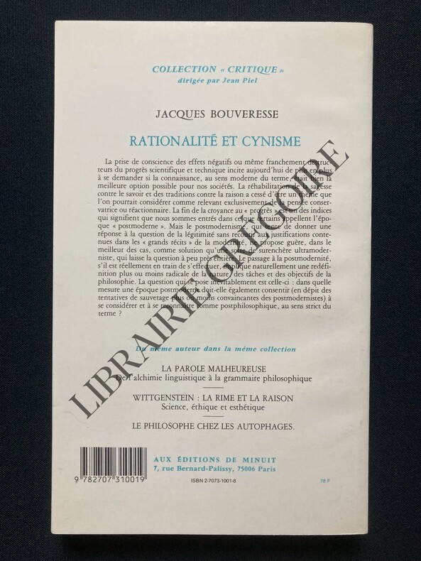 Paris, Les Editions de Minuit, 1984. 13 x 22, 226 pp., broché, bon état (couverture légèrement défraîchie).