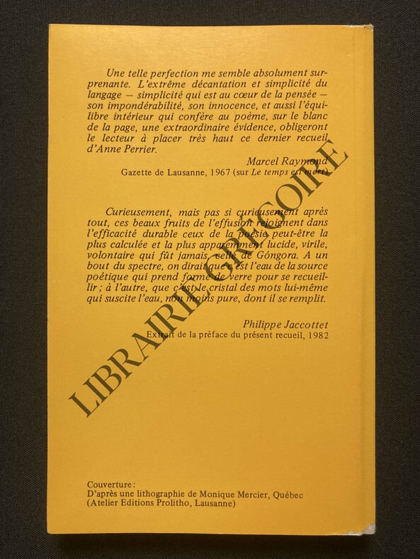 PREFACE DE PHILIPPE JACCOTTET-200 PAGES FORMAT 11,5 CM X 18 CM-COUVERTURE D'APRES UNE LITHOGRAPHIE DE MONIQUE MERCIER-(3C)