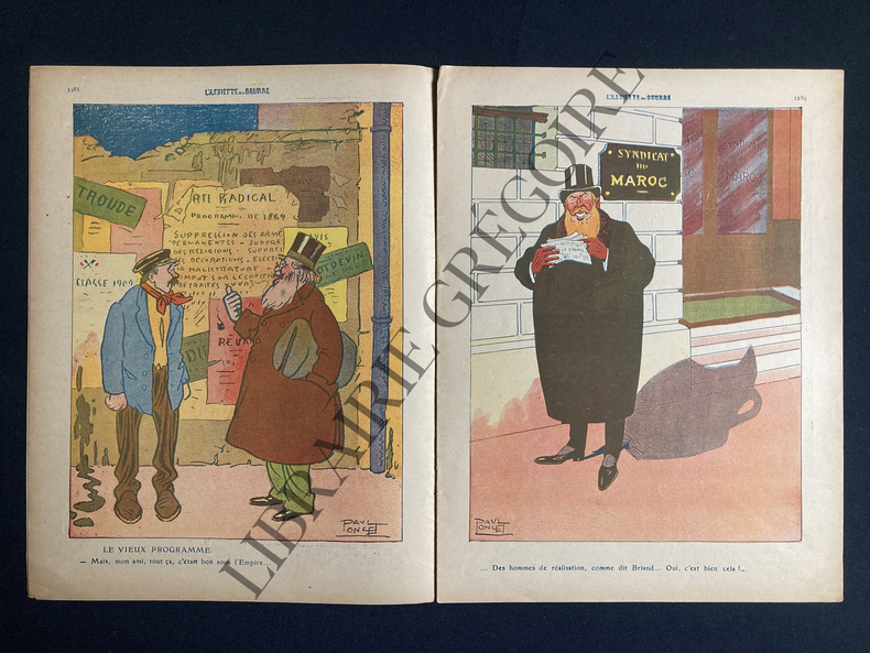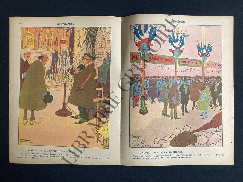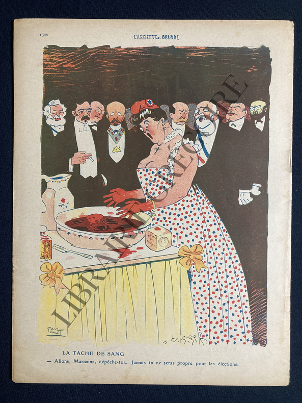 16 PAGES FORMAT 24,5 CM X 32 CM-COUVERTURE COULEURS, MARIANNE, "QUAND LE POPULO S'APPROCHERA, IL LECHERA L'ASSIETTE."-P2: "DEFENSE REPUBLICAINE", NOIR ET BLANC-P3: "LA DELEGATION DU COMITE EXECUTIF", NOIR ET BLANC-P4: "LE VIEUX PROGRAMME", COULEURS-P5: SYNDICAT DU MAROC, COULEURS-P6: MARIAGE GUERNIER, 2 NOIR ET BLANC-P7: PALMES ACADEMIQUES, NOIR ET BLANC-P8/9: TRIBUNE, COULEURS-P10: "SOIR DE CONGRES", NOIR ET BLANC-P11: "LE CHOIX", NOIR ET BLANC-P12: "VISITE A NOTRE-DAME DE LA GARDE, COULEURS-P13: "L'AUTRE COTE DE LA BARRICADE", COULEURS-P14: "INQUIETUDES", NOIR ET BLANC-P15: "L'ANCETRE", NOIR ET BLANC-P16: "LA TACHE DE SANG", COULEURS