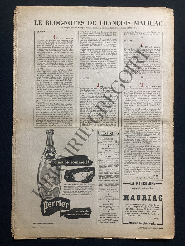 24 PAGES-30 CM X 43 CM-EN COUVERTURE "L'HOMME DE LA SEMAINE: H.-G. CLOUZOT", GROS PLAN, ROUSSEURS EN PLIURE CENTRALE DE UNE, SUITE SUR 2 PAGES, PHOTO AVEC PICASSO, "LE MYSTERE PICASSO"-ALAIN: A PROPOS DE., 1P, PHOTO-EXPOSITIONS: TELEVISION PEINTE A LA MAIN BRAUNER ET MATTA, GALERIE DU DRAGON