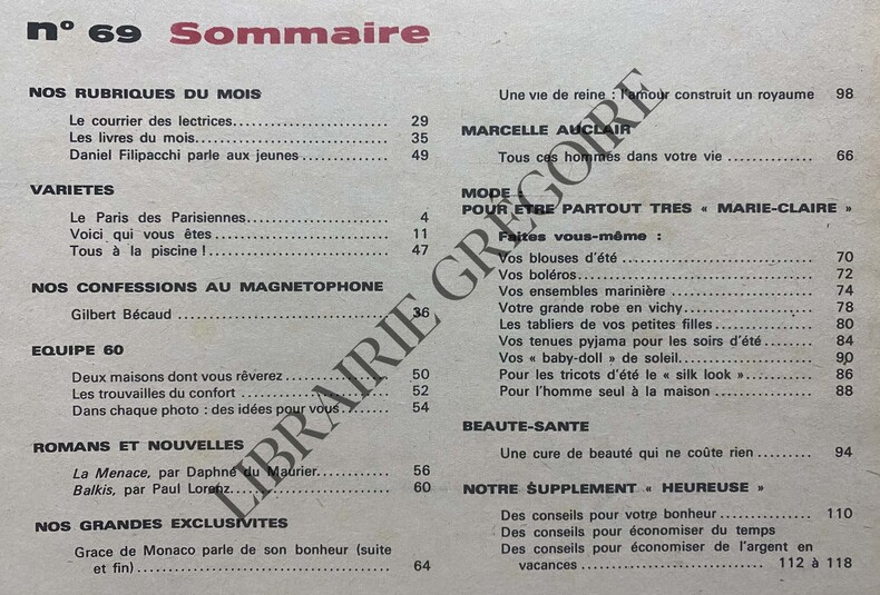 156 PAGES-27,5 CM X 35 CM-EN COUVERTURE ELSA MARTINELLI, PHOTO WILLY RIZZO-LE PARIS DES PARISIENNES, PAR GUILLAUME HANOTEAU: "LA VERITE" DE CLOUZOT, 3 PHOTOS BRIGITTE BARDOT, RAOUL LEVY, PHOTO, CLOUZOT, 3 PHOTOS-PLUS DE CULTURE PHYSIQUE DANSEZ LE BOUZOUKI, 5 PHOTOS JEAN PIERRE CASSEL-LA BOISSON DE JEUNESSE, PAR LOUISE DE VILMORIN, PUBLI REPORTAGE SUR 3 PAGES, POMME, CIDRE, 2 PHOTOS-DES SECRETS QUE JE N'AVAIS MEME JAMAIS DITS A MA FEMME, PAR GILBERT BECAUD, PROPOS RECUEILLIS PAR GEORGES BELMONT ET MICHELE MANGEOT, PHOTOS ROGER CORAL, 8P- SALUT LES COPAINS!, PAR DANIEL FILIPACCHI, 1P, PHOTOS PHILIPPE ET ALIX COMBELLE-LA MENACE, PAR DAPHNE DU MAURIER, ILL ROSWELL KELLER-BALKIS, PAR PAUL LORENZ, ILL DAVID BERGER-POUR LA PREMIERE FOIS GRACE DE MONACO PARLE DE SON BONHEUR, INTERVIEW DE PETE MARTIN-MODE-LES PETITES FILLES "MODELES"-L'AMOUR CONSTRUIT UN ROYAUME, DESSINS DE COLETTE PORTAL, TEXTES DE CATHERINE SEDILLOT, 8 PAGES