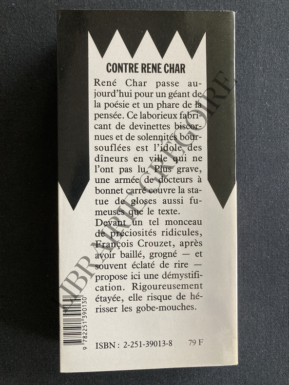 Sommaire : Le chemin de l'impossible (Paul Audi) / Rien n'illumine, sinon la rencontre (Martine Broda) / Poésie contre argument, Paul Celan et René Char (Andrea Lauterwein) / Ce que lire veut dire (Clément Fradin) /... Classification Dewey : 800-LITTERATURE (BELLES-LETTRES)