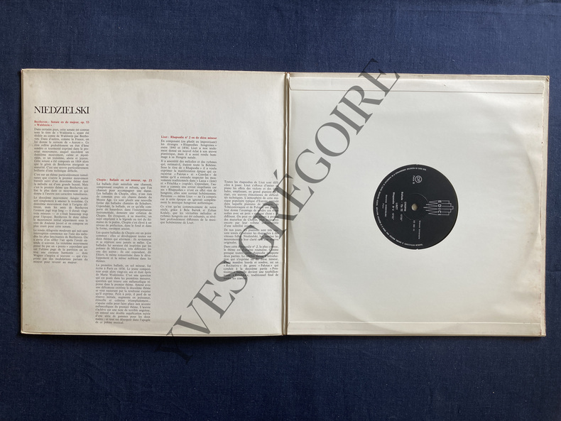 BEETHOVEN: SONATE EN DO MAJEUR, OP.53 "WALDSTEIN"-CHOPIN: BALLADE EN SOL MINEUR, OP.23-LISZT: RHAPSODIE N°2 DO DIESE MINEUR-EN COUVERTURE TOUCHES DE PIANO STYLISEES ROUGES GRISES ET NOIRES-TEXTE EN FRANCAIS ET ANGLAIS-PHOTOGRAPHIE-BIOGRAPHIE-DISQUE PROCHE DU NEUF-(EM16CA)
