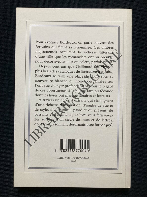Gallimard, Mollat 2011 1 vol. broché in-12, broché, 92 pp. Bande de l'éditeur jointe. Excellent état.