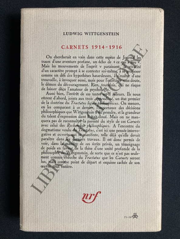 GALLIMARD-NRF COUVERTURE SOUPLE ETAT COMME NEUF