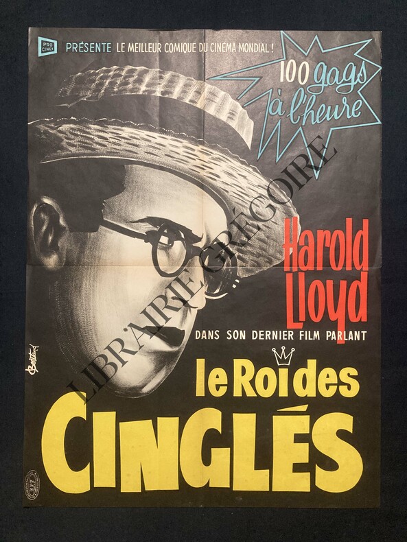 56,5 CM X 77 CM-GROS PLAN DE L'ACTEUR EN NOIR ET BLANC DESSINE PAR B.TAND AVEC LUNETTES ET CANOTIER-TEXTE EN FRANCAIS