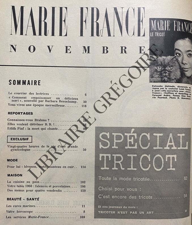 172 PAGES-23,5 CM X 31 CM-EN COUVERTURE KATSOUKO MATZUDA, LOUIS FERAUD-COMMENT EMPOISONNER UN DELICIEUX MARI, NOUVELLE INEDITE DE BARBARA BEAUCHAMP, ILLUSTRATION COULEURS DE JACQUES POIRIER-FRANCOISE SAGAN: "AIMEZ-VOUS BRAHMS?" OUI, MAIS CONNAISSEZ VOUS BRAHMS?, PAR ELISABETH MOREL, 10P-UNE FEMME PARMI LES FEMMES, CATHERINE F., PAR PHILIPPE LABRO, CESARIENNE-ELLES VEULENT DETRONER B.B., PHOTO PLEINE PAGE MARIE LAFORET, PHOTO PLEINE PAGE CATHERINE ROUVEL, PHOTO PLEINE PAGE DANIELLE GAUBERT,.-TOUTE LA MODE TRICOTEE, PAR HENRY LARTIGUE, 10P-LES CHANDAILS SURPRISES-PIAF LA MORT QUI CHANTE, PAR JACQUES MOUSSEAU, 4P, 2 PHOTOS-DESSIN COULEURS PLEINE PAGE DE BRENOT POUR LES PARAPLUIES-MYLENE DEMONGEOT POUR PUBLICITE LUX