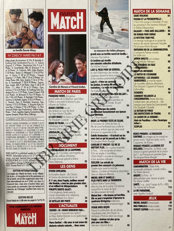EN COUVERTURE CAROLINE DE MONACO ET VINCENT LINDON-FRANCOISE VERNY, PAR JEAN-EDERN HALLIER, 3P-STEVEN SPIELBERG LE TRIOMPHE ABSOLU-TOUVIER CE "BRAVE MONSIEUR PAUL"-LE PREMIER TEXTE DE CELINE, "HISTOIRE DU PETIT MOUCK", 10P