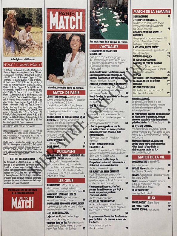 100 PAGES-23 CM X 30 CM-CAROLINE DE MONACO EN COUVERTURE-LE MYSTERE MODIANO, 3P PAR PATRICK BESSON, 4 PHOTOS-MONICA BELLUCCI DANS L'OEIL DE BETTINA RHEIMS, 4P-JEAN-CLAUDE TRICHET, 4P-LIZ HURLEY LA BELLE OFFENSEE, 6P
