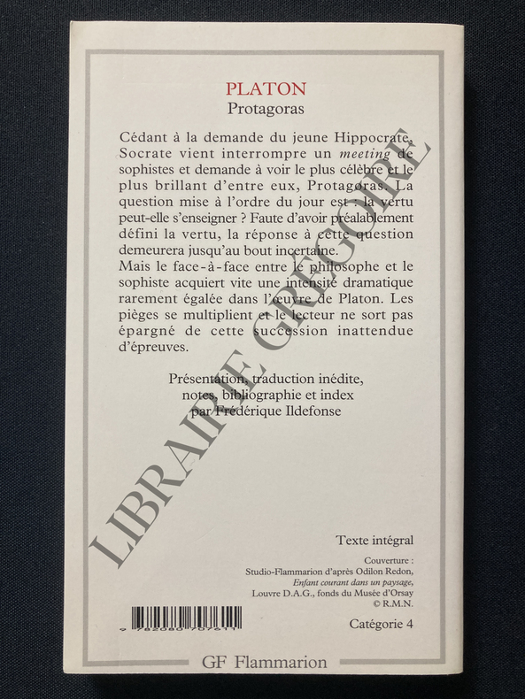 Paris, Les Belles Lettres, 1975. In-8 broché, 105 pp., 4 pl. dépliantes (tableaux des discours de Socrate et de Protagoras) in-fine.