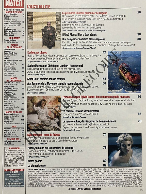 116 PAGES-EN COUVERTURE "SOPHIE MARCEAU SON NOUVEAU BONHEUR S'APPELLE CHRISTOPHE LAMBERT", GROS PLAN-AVE WEINSTEIN!, 3P-L'ABBE PIERRE IL LES A TOUS REUNIS, 2P-SOPHIE ET CHRISTOPHE L'AMOUR FOU, 6P-SAINT-CAST MIRACLE DANS LA TEMPETE, 2P-FRANCOISE SAGAN SYLVIE TESTUD DEUX CHARMANTS PETITS MONSTRES, 6P-LA HAUTE COUTURE DERNIER JOYAU DE L'EMPIRE ARMANI, 4P-KYLIE MINOGUE COUP DE FATIGUE, 4P-PLATINI TOUJOURS SUR LES SENTIERS DE LA GLOIRE, 2P, PHOTO-VOYAGE AU PAYS DU DIAMANT NOIR, 5P-MOTS FLECHES REALISES