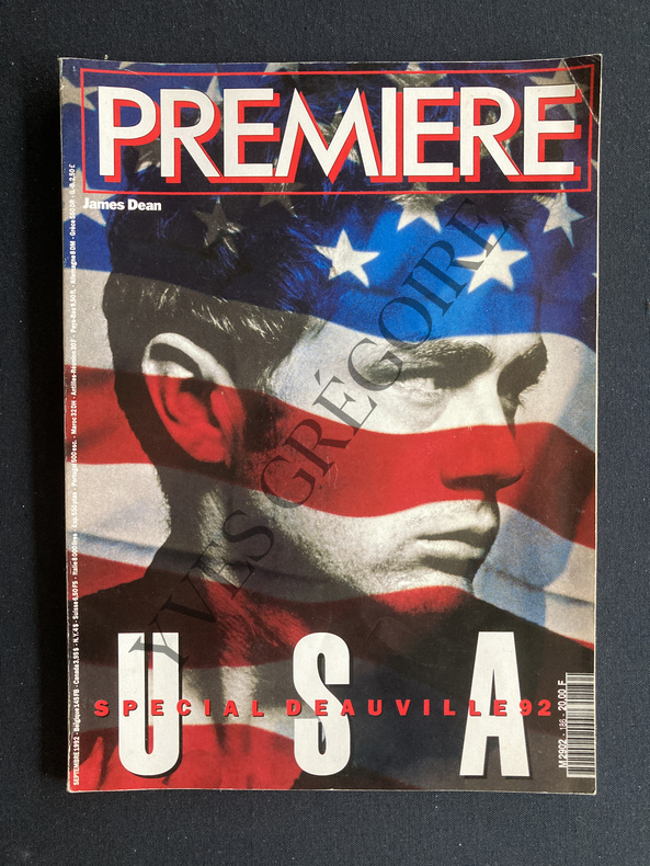 152 PAGES-20n7 CM X 28,5 CM-EN COUVERTURE GROS PLAN NOIR ET BLANC DE JAMES DEAN AVEC DRAPEAU AMERICAIN-EMPLOI CHERCHE ACTEUR, PHOTO ARLETTY-BOVARY BATAVE ELINE VERE D'HARRY KUMEL, PHOTO MARIANNE BASLER ET MICHAEL YORK-SPECIAL DEAUVILLE 92 USA, 30P, (JIMMY LA LEGENDE, 6P,.)-TRAITEMENT DE CHOC DE BERTRAND TAVERNIER, 3P-"UN COEUR EN HIVER" CLAUDE SAUTER MUSICIEN DES SENTIMENTS, 4P-TOURNAGE: "LES VISITEURS DU TEMPS", JEAN-MARIE POIRE, 6P-"1492, CHRISTOPHE COLOMB", 2P-HOMMAGE: ARLETTY ETERNELLE "NATURE", 3P-ANNONCE POUR ETIENNE DAHO AU ZENITH