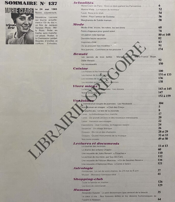 EN COUVERTURE BENEDICTE LACOSTE, PHOTO WILLY RIZZO-EXPOSITION: JEAN COCTEAU: LE MAGICIEN REVIENT, DEMI PAGE, DESSIN, JACQUEMART ANDRE-MARINA: LA MAISON DU BONHEUR, 2P, 3 PHOTOS-LA REVOLTE DES ENFANTS CHAPLIN, 4P, 5 PHOTOS-MODE: TRICOTS D'ETE, 10P-ELSA MARTINELLI A ETRENNE AUX BAHAMAS NOTRE PATRON EPONGE, 2P, 2 PHOTOS-IMPRIMES D'ETE, 8P-LA LECON DE TROIS BELLES, PASCALE AUDRET, ODILE VERSOIS, MARIE LAFORET, 8 PAGES-LE BONHEUR A 4 MAINS, HEIDSIECK, 6P, 11 PHOTOS-UNE NOUVELLE DE POCHE FELICIEN MARCEAU "EN DE SECRETES NOCES"-UNE NOUVELLE DE POCHE ALPHONSE ALLAIS "CONTE A SARA"