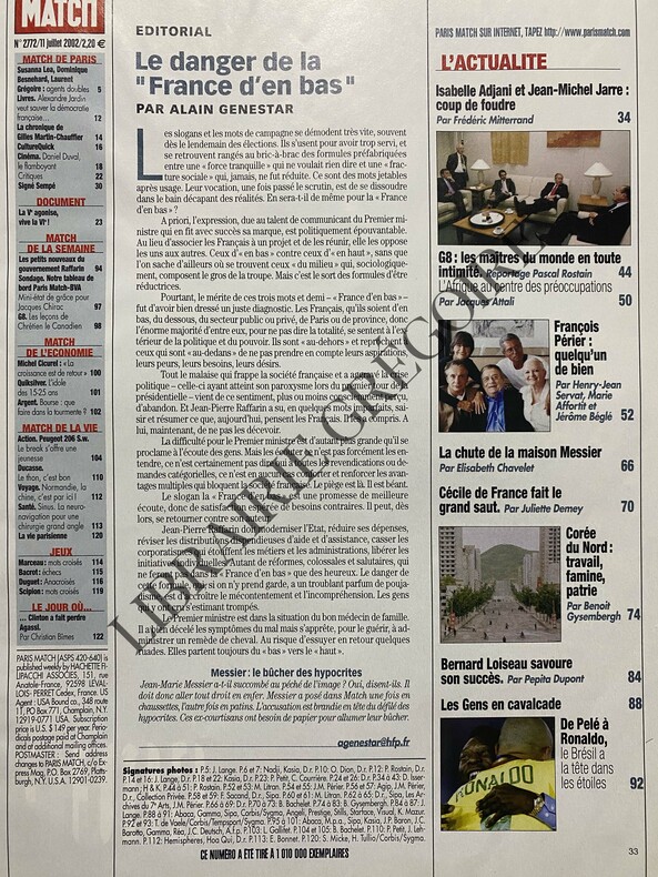 EN COUVERTURE "ISABELLE ADJANI JEAN-MICHEL JARRE ILS VEULENT SE MARIER"-LA Ve AGONISE VIVE LA VIe!, OLIVIER DUHAMEL, 3P-ISABELLE ADJANI JEAN-MICHEL JARRE COUP DE FOUDRE, 10P, PHOTOS DOMINIQUE ISSERMANN-FRANCOIS PERRIER QUELQU'UN DE BIEN, 14 PAGES-CECILE DE FRANCE FAIT LE GRAND SAUT, 4P-BERNARD LOISEAU SAVOURE SON SUCCES, 4P