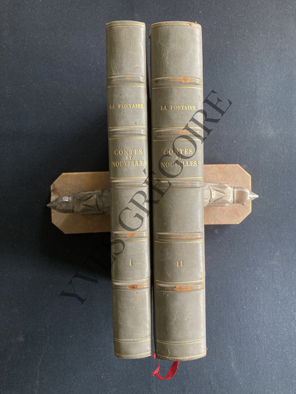 Edition illustrée par MM. Tony Johannot, Cam. Roqueplan, Déveria, C. Boulanger, Fragonard père, Janet-Lange, Français, Laville, Ed. Vattier et Adrien Féart. Contes et nouvelles en vers est un recueil de divers contes et nouvelles grivois, recueillis et versifiés par Jean de La Fontaine et publiés en trois parties par Claude Barbin, en 1665, 1666 et 1671. Pour écrire ces contes, La Fontaine s'est inspiré de plusieurs œuvres françaises et italiennes des XVe et XVIe siècles, dont le Décaméron de Giovanni Boccace, Orlando furioso de Ludovico Ariosto, le recueil anonyme des Cent Nouvelles Nouvelles et l'œuvre de Bonaventure Des Périers. vol demi cuir, 26x17, bel exemplaire, 533pp. Paris, Ernest Bourdin et Cie, ss date vers 1860