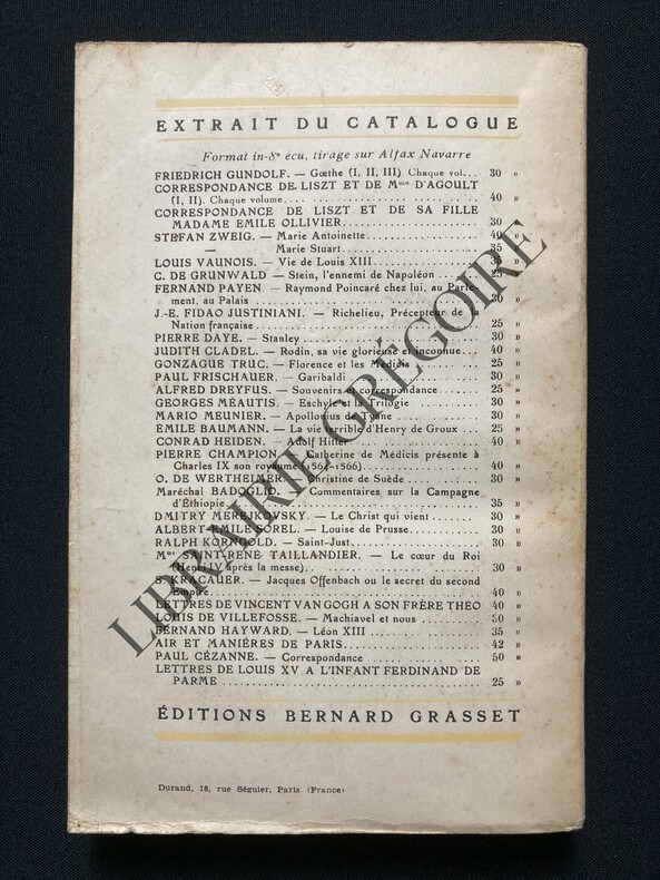 GRASSET Bernard. 28 déc. 1931. In-12. Relié. Etat d'usage, Couv. défraîchie, Dos satisfaisant, Intérieur frais. 315 pages. Carte en frontispice, noir et blanc. Etiquette de code sur la coiffe en-tête et tampons de bibliothèque sur la page de titre et dans quelques marges. Mors usés.. . . . Classification Dewey : 923-Politiciens, economistes, juristes, enseignants