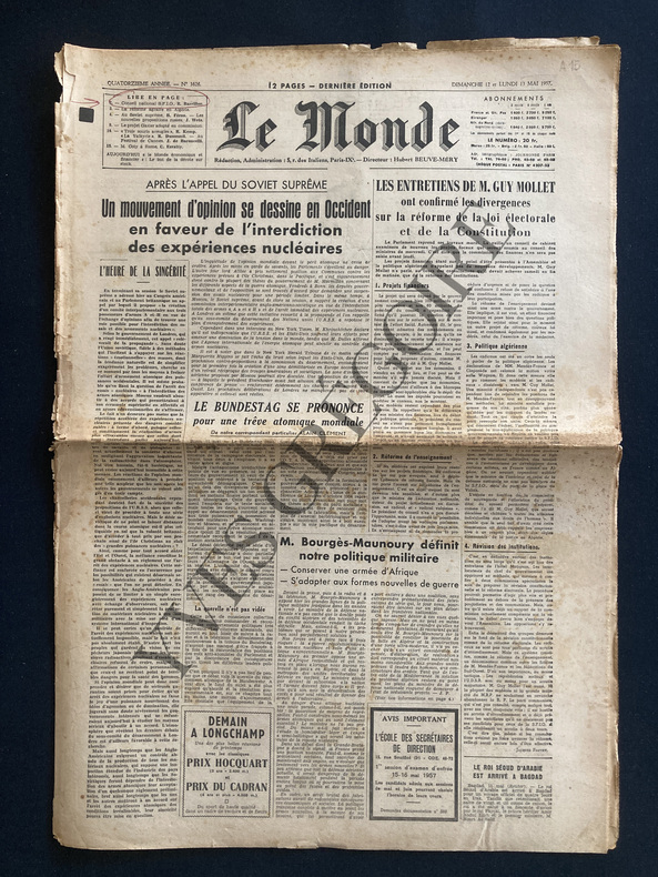 12 PAGES-LA SITUATION EN ALGERIE-A LA RENAISSANCE "TROIS SOURIS AVEUGLES" D'AGATHA CHRISTIE-COMPLET