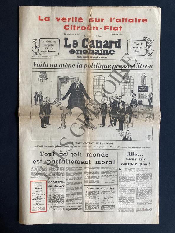 8 PAGES-EN UNE: VOILA OU MENE LA POLITIQUE PRESSE CITRON, DESSIN DE MOISAN, CITROEN-CINEMA L'ODYSSEE DE L'ESPACE (TRAGI-COSMIQUE) STANLEY KUBRICK, QUART DE PAGE-