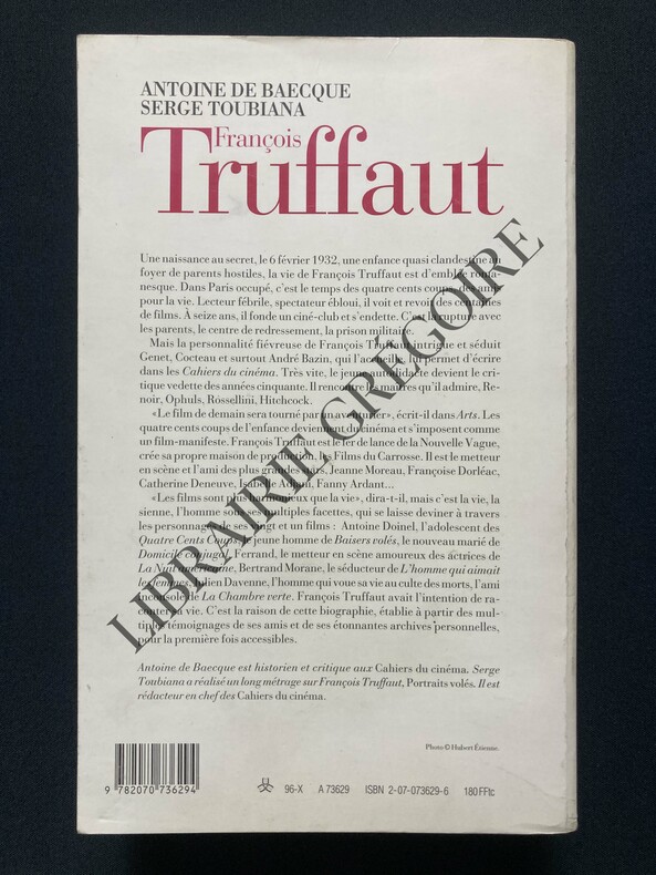 L'oeuvre de François Truffaut est universellement connue. Ses vingt et un longs métrages sont considérés par un grand nombre de spectateurs comme des livres de chevet. Mais qui était cet homme, disparu en 1984 à l'âge de cinquante-deux ans, et qui voua sa vie au cinéma ? François Truffaut ne cessa d'entretenir le mystère et les malentendus, comme pour maintenir le secret. S'il est possible, de film en film, de retracer les contours de sa vie, à travers les personnages d'Antoine Doinel, l'adolescent des Quatre cents coups interprété par Jean-Pierre Léaud, puis le jeune homme de Baisers volés, le nouveau marié de Domicile conjugal, Ferrand, le metteur en scène de La Nuit américaine, Bertrand Morane, le séducteur de L'homme qui aimait les femmes, ou Julien Davenne, l'homme qui voue sa vie au culte des morts, l'ami inconsolé de La Chambre verte, la personnalité de François Truffaut est plus complexe et méritait une approche biographique.Établie à partir des multiples témoignages de ses amis et de ses étonnantes archives personnelles, cette biographie nous révèle les multiples facettes de François Truffaut. Voici un récit attentif et minutieux, un éclairage inédit sur un cinéaste sensible et chaleureux. Voir le sommaire sur photos jointes.