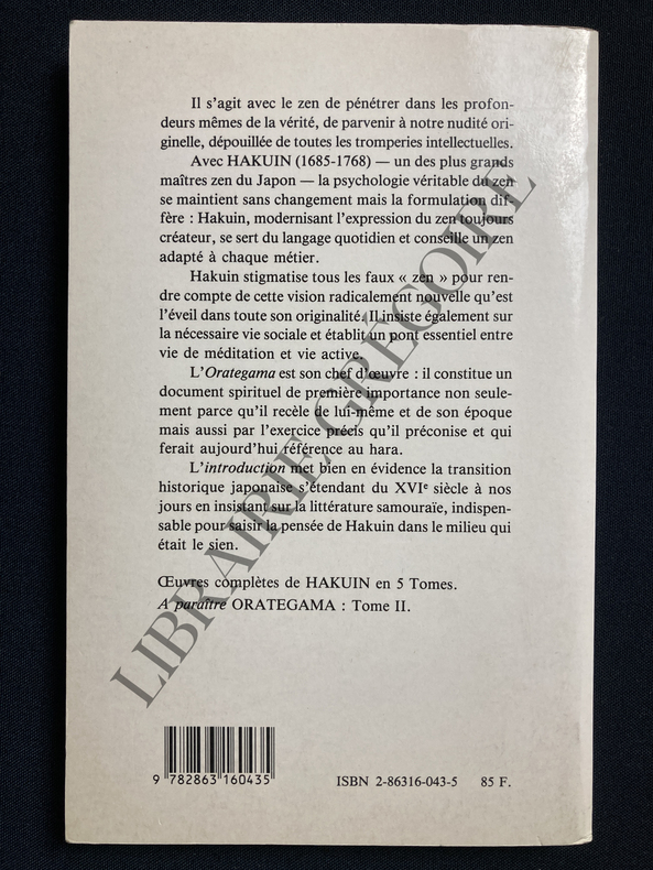 Moi, bouilloire à portée de main. Introduction et traduction de Maryse et Masumi Shibata. Orategama tome 1. (Paris: L'Originel, 1991). [M.C.: Japon littérature, zen]