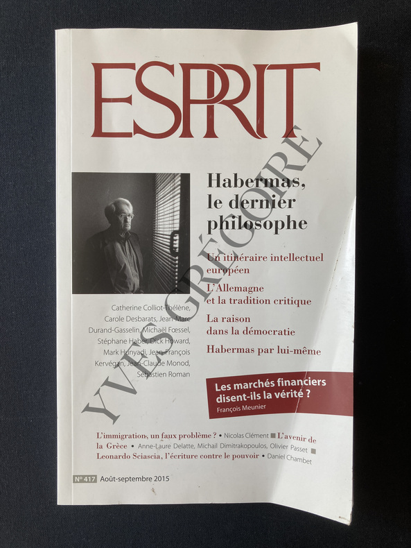 238 PAGES-IN 8-UBERMAS, LE DERNIER PHILOSOPHE, UN ITINERAIRE INTELLECTUEL EUROPEEN, L'ALLEMAGNE ET LA TRADITION CRITIQUE, LA RAISON DANS LA DEMOCRATIE, HEBERMAS PER LUI MEME-PLIURE EN UNE SINON ETAT NEUF (19E)