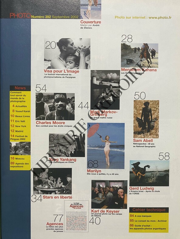 100 PAGES-23 CM X 30 CM-MARILYN MONROE EN COUVERTURE-YOUSUF KARSH S'EST ETEINT, AP, 8 PHOTOS-VISA POUR L'IMAGE PERPIGNAN 2002-LES HAREDIM EN ISRAEL "CEUX QUI CRAIGNENT DIEU"-STARS, ARCHIVES DE PARIS MATCH-CARL DE KEYZER-MARKOV GRINBERG-SAM ABELL-CHARLES MOORE-GERD LUDWIG-CATHOLIQUES CHINOIS-MARILYN, PAR ANDRE DE DIENES, 8 PAGES-