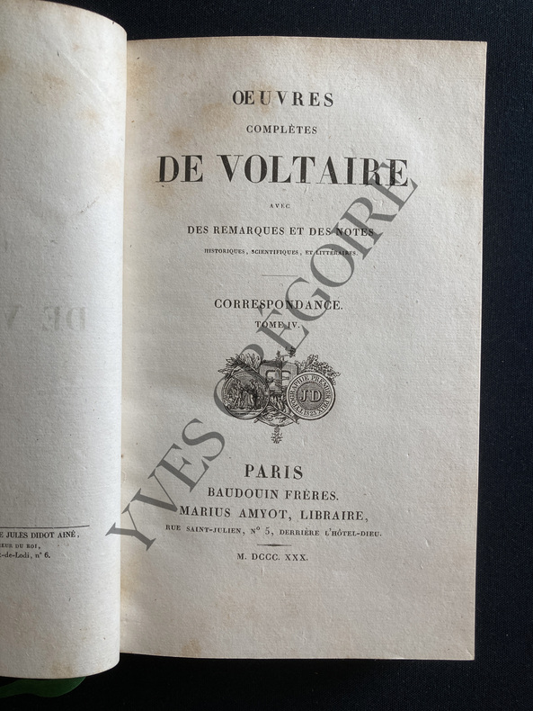 AVEC DES REMARQUES ET DES NOTES HISTORIQUES SCIENTIFIQUES ET LITTERAIRES-LETTRE 674 A M BERGER D'OCTOBRE 1738 A LA LETTRE 875 A FREDERIC PRINCE ROYAL DE PRUSSE DU 28 DECEMBRE 1739-RELIURE DOS CUIR TITRES DORES-PLATS MARBRES-SIGNET-(EM222)