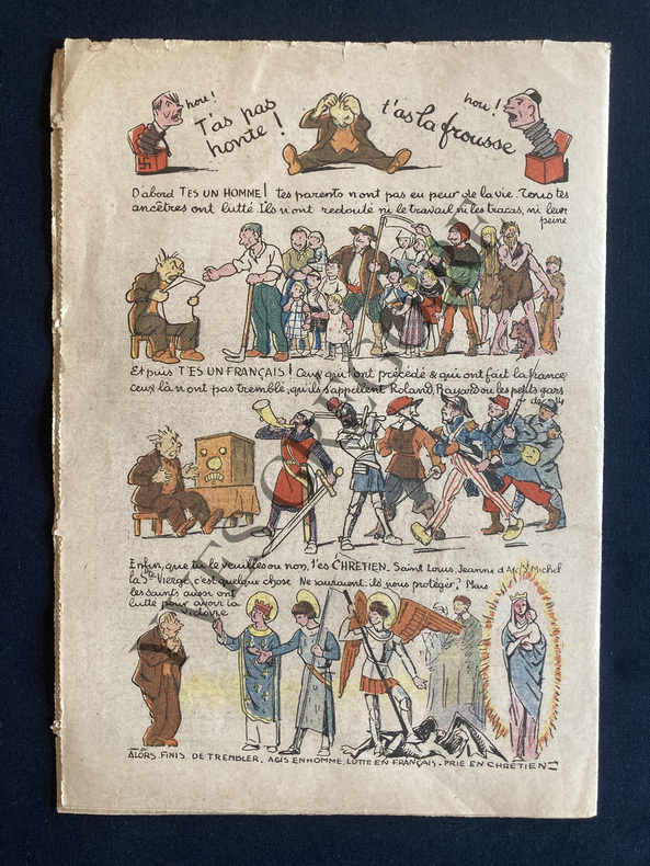 20 PAGES-18,5 CM X 26,5 CM-EN COUVERTURE LE LIEUTENANT DE VAISSEAU PARIS QUI VIENT DE REALISER BRILLAMMENT LA LIAISON AERIENNE FRANCE ETATS UNIS ET RETOUR-LE "THETIS"-LE DRAME DU "SQUALUS", 1 PAGE, 2 ILL, PHOTO, DESSIN COULEURS EN PAGES CENTRALES, COMPOSITION DE GIGNOUX-PAT'APOUF DETECTIVE, 1P COULEURS-EN 4 DE COUVERTURE: "T'AS PAS HONTE! T'AS LA FROUSSE!"